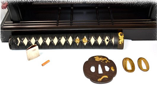 ножнах черный шнур сагео ручного плетения. Рукоять меча - итомакизука.
